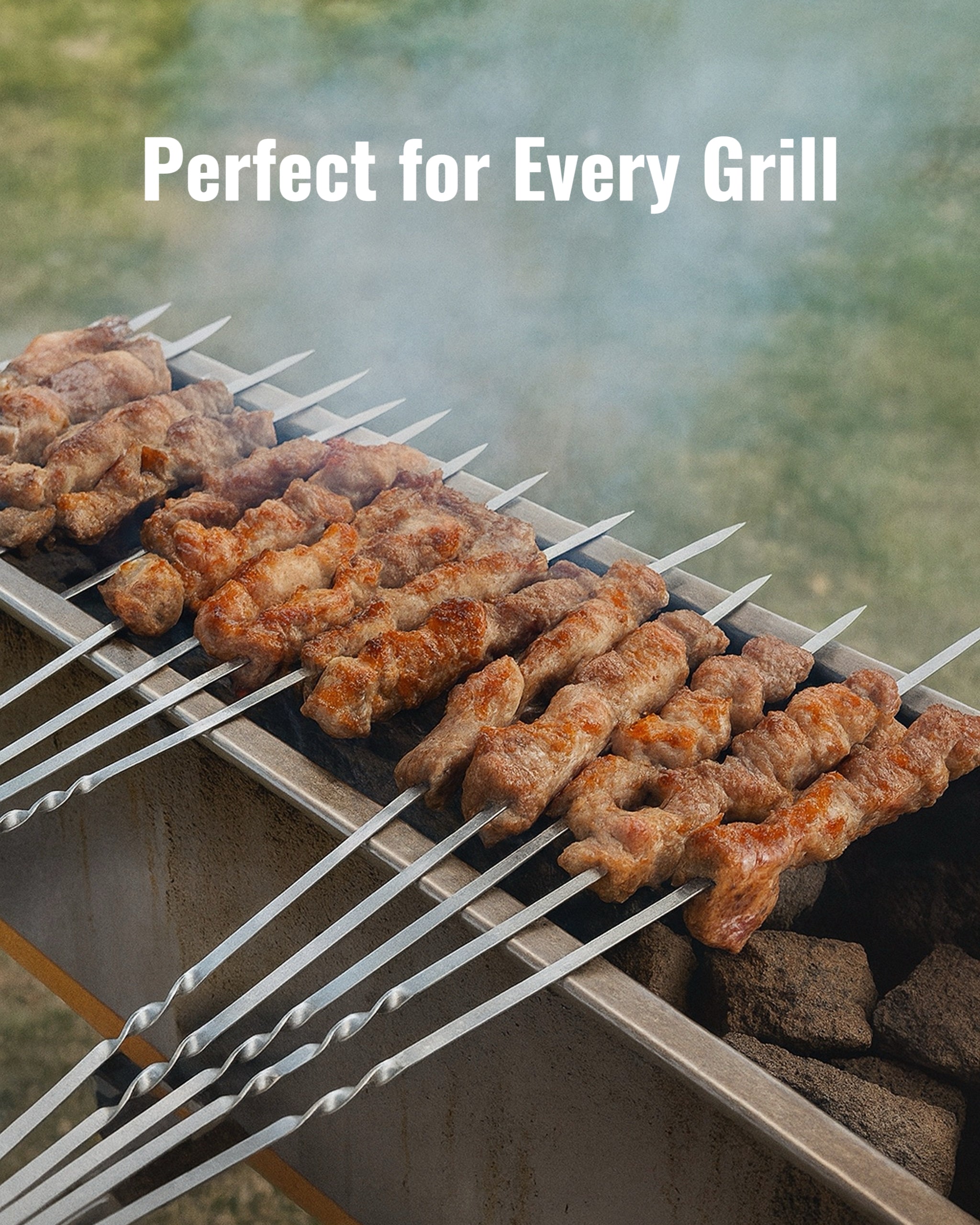Stainless Steel Kebab Skewers (100PC Needle Skewers / 30PC Flat Skewers)