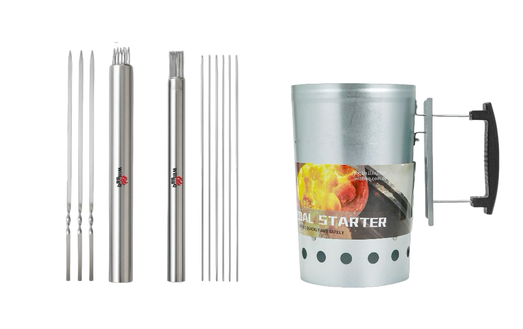 Fire Starter Chimney * 1; Option of 100pc Needle/Flat Skewers * 1