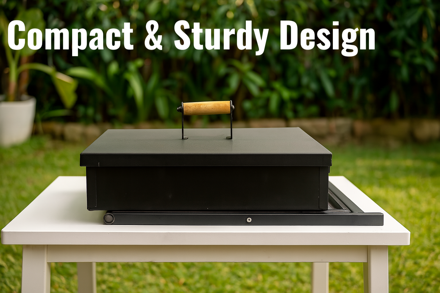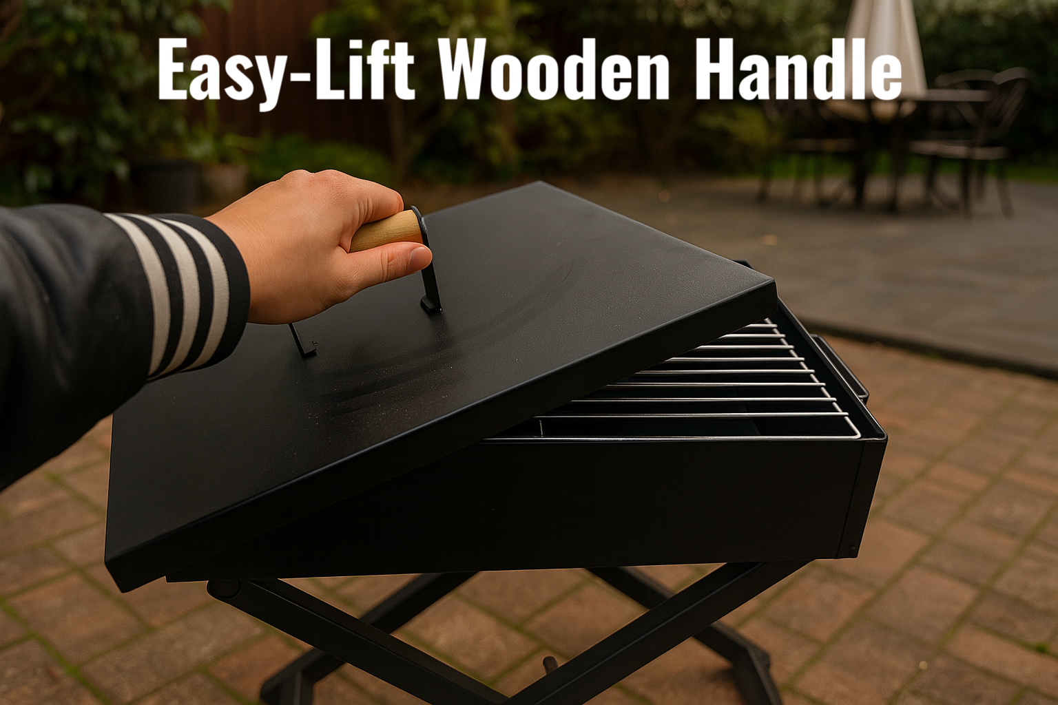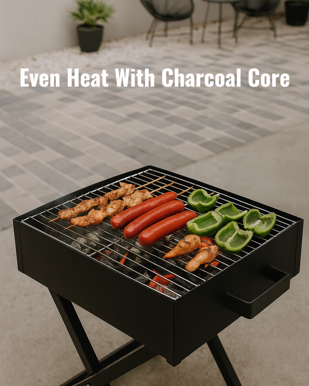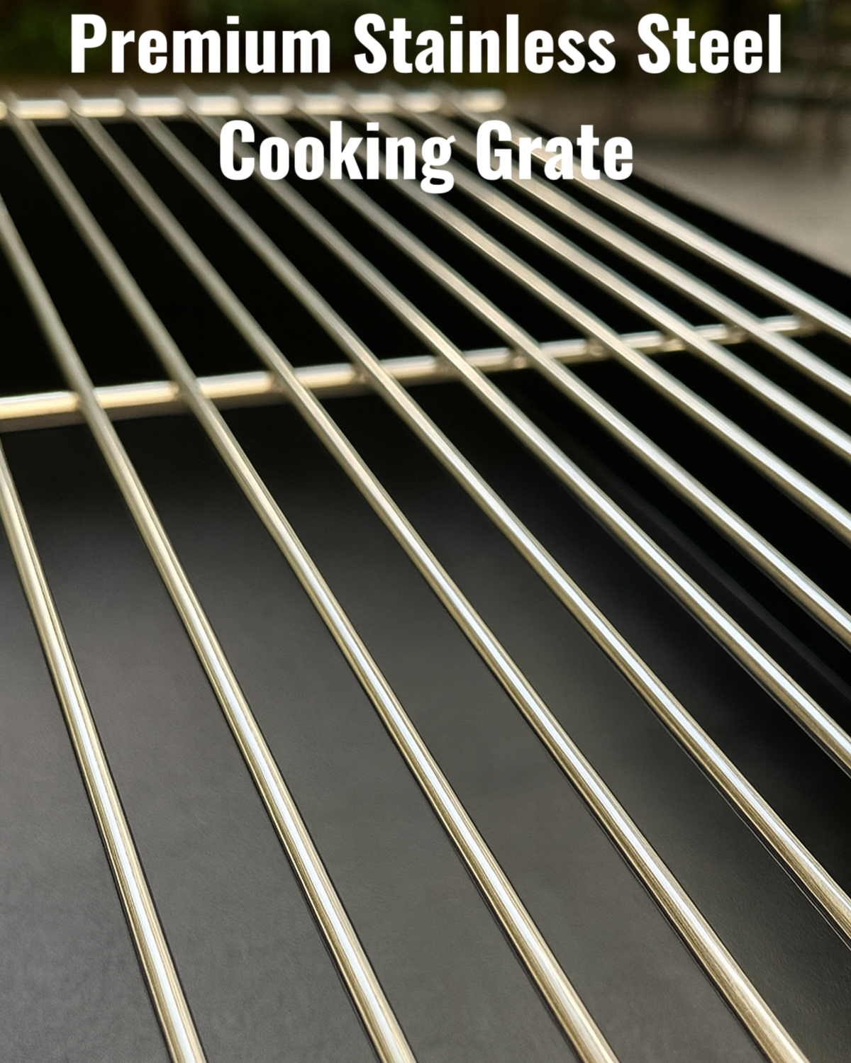 This compact and foldable 40 cm charcoal BBQ grill delivers authentic charcoal flavor while offering convenient portability. Made with a sturdy alloy steel body and a detachable lid, it’s ideal for family gatherings, camping, picnics, and outdoor adventures. Featuring a Premium Stainless Steel cooking grate and a foldable design, it’s ready for use in seconds and packs away neatly.