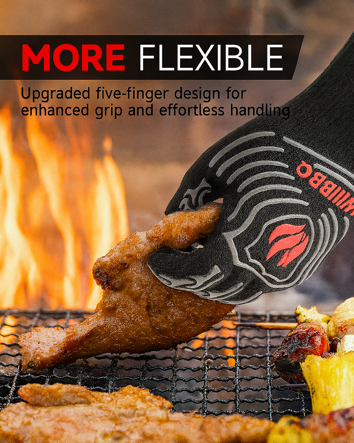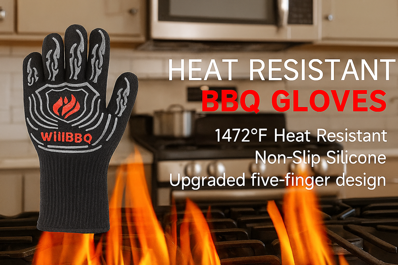 The WillBBQ Heat-Resistant BBQ Gloves are designed for serious grillers who need reliable protection when working around high heat. Made from premium heat-resistant fabric and lined for comfort, these gloves provide excellent grip, extended wrist coverage, and durability in demanding outdoor cooking conditions.