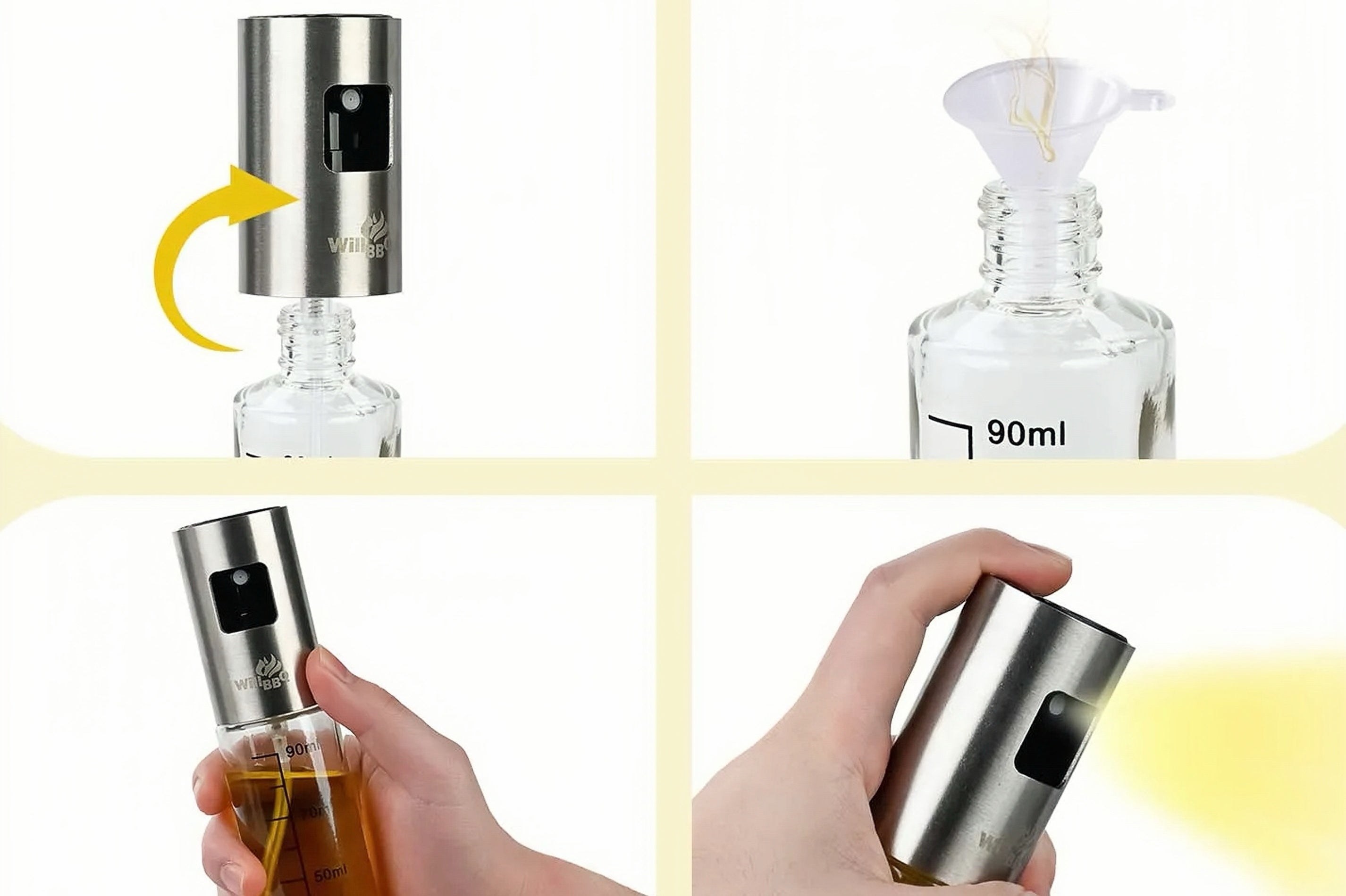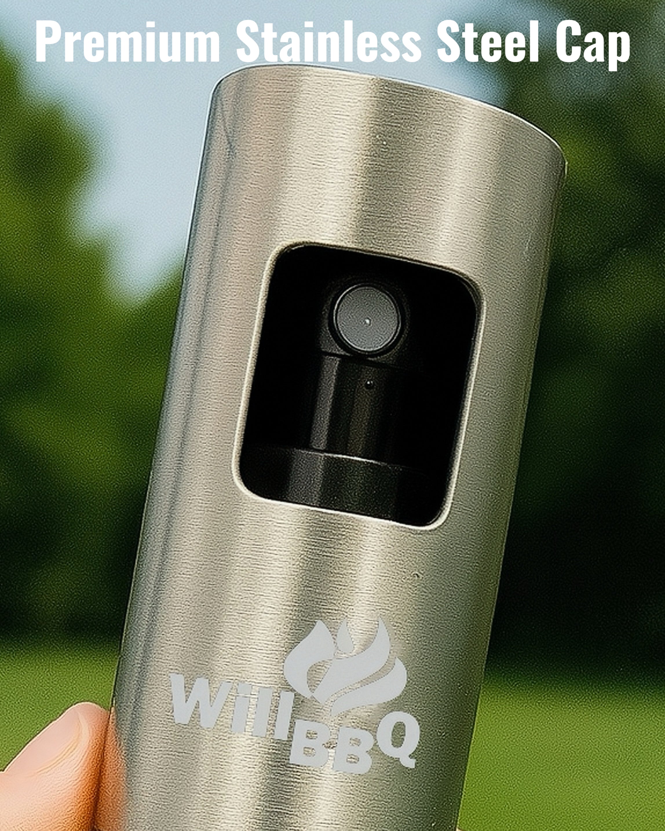 The WillBBQ Premium Oil Spray Bottle is built for clean, controlled oiling—whether you're grilling meat, roasting vegetables, or dressing a fresh salad. With a sleek stainless steel body and thickened glass base, it’s durable, stylish, and designed for one-handed operation. The ultra-fine mist ensures even coverage, reducing oil waste and improving cooking results.