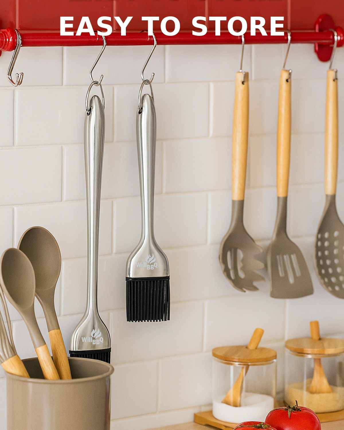 The WillBBQ Basting Brush Set is designed for serious grillers and home cooks who want reliable, mess-free sauce application. Made with Premium Stainless Steel handles and equipped with replaceable silicone bristle heads, these brushes combine hygiene, durability, and convenience. Whether you’re applying marinades, oil, or sauces, this set delivers smooth, even coverage every time.