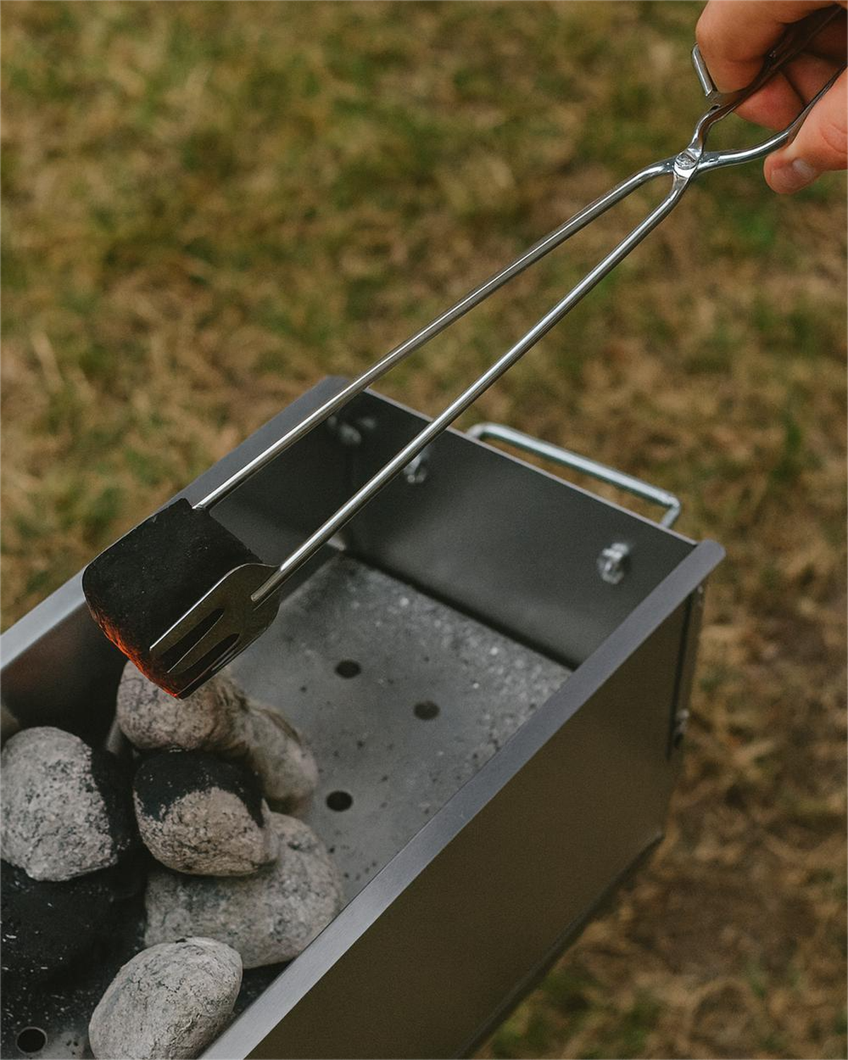 These charcoal tongs are built from Premium Stainless Steel and feature a long reach, making them ideal for managing charcoal while keeping your hands safely away from the heat. The solid grip tips are shaped for maximum hold on irregular objects like lump charcoal or firewood. Durable, simple, and highly heat-resistant, they’re a must-have for any serious BBQ setup.