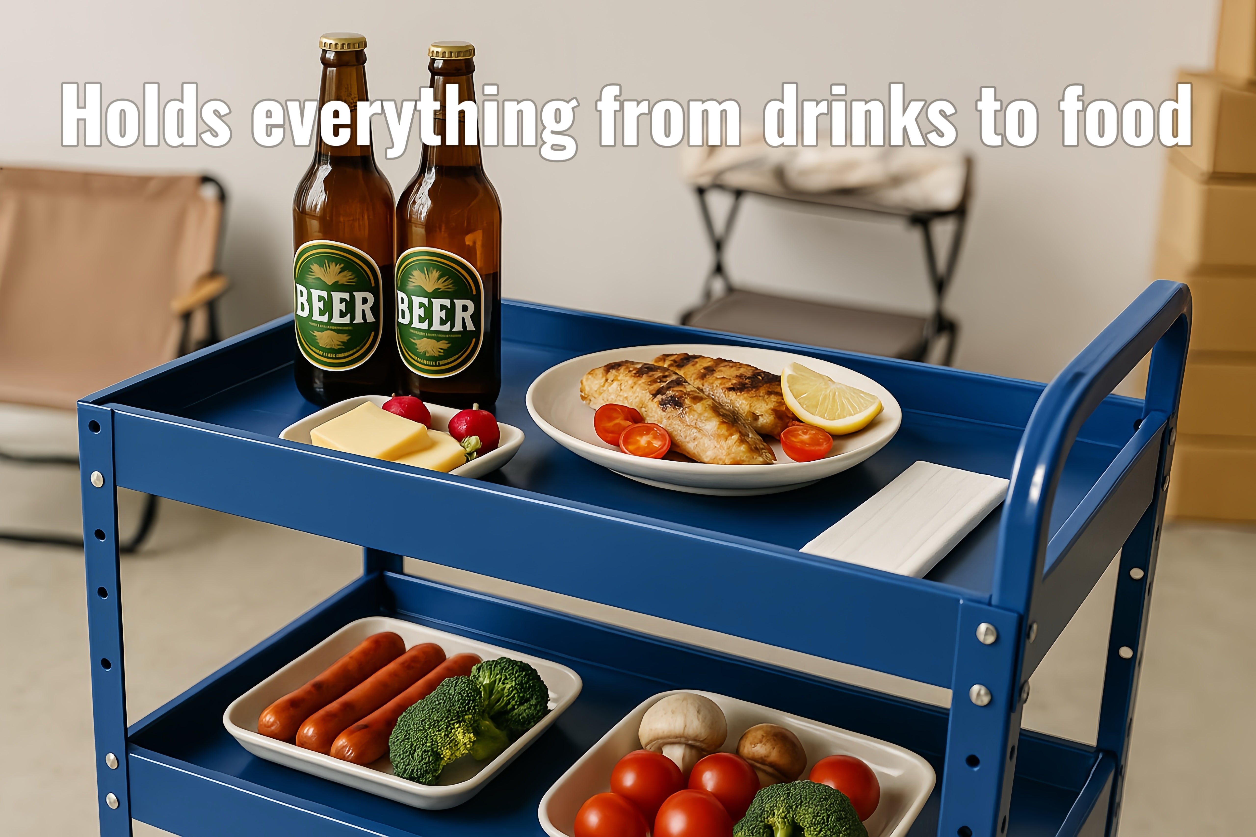 This three-tier BBQ utility cart provides maximum storage and easy mobility for all your cooking, grilling, or entertaining needs. Its sturdy steel frame with a powder-coated finish ensures long-lasting durability, while the compact size makes it ideal for both backyard barbecues and indoor kitchens. With lockable wheels for safety and ergonomic handles for smooth control, it’s the perfect companion for food prep, serving, and storage.