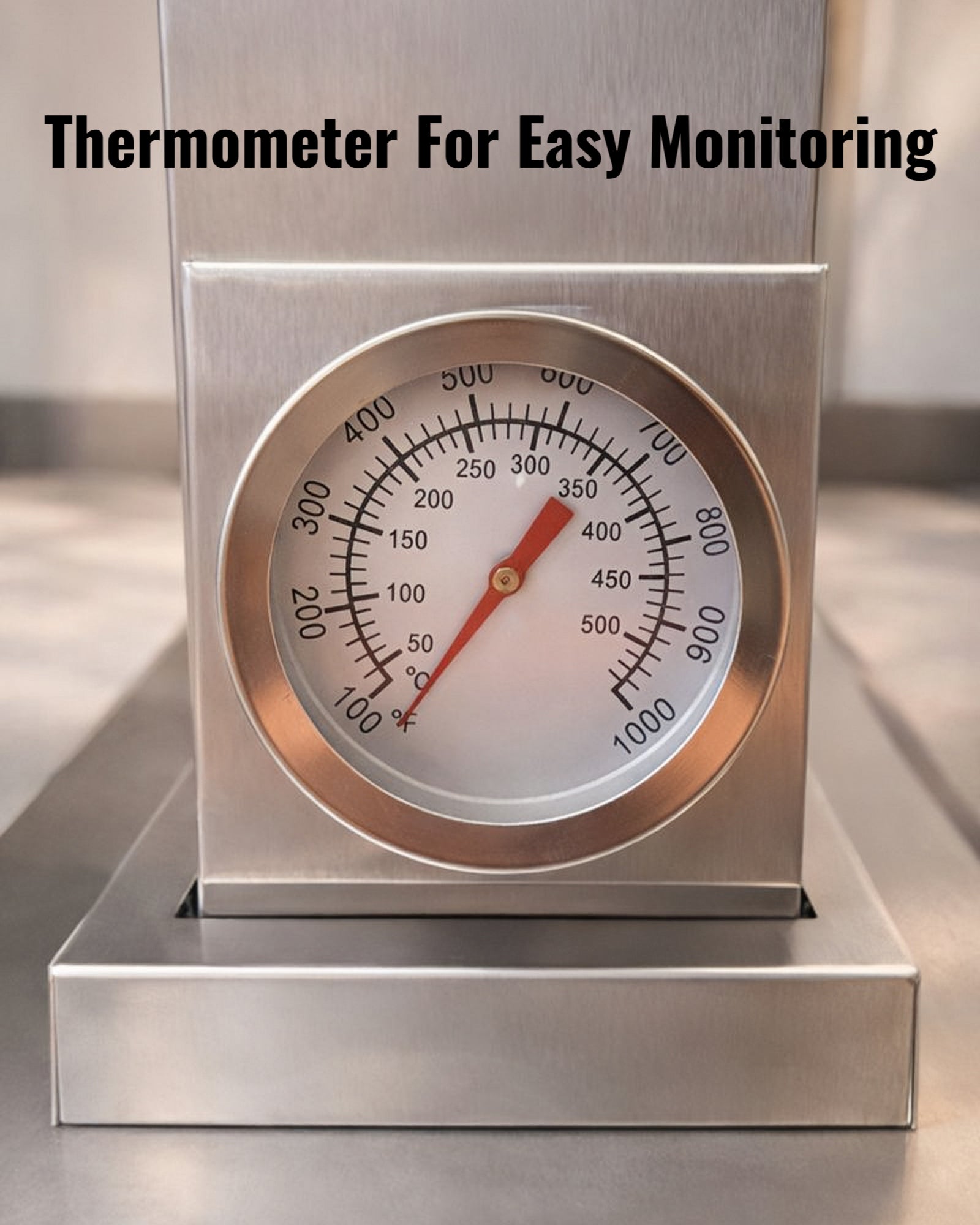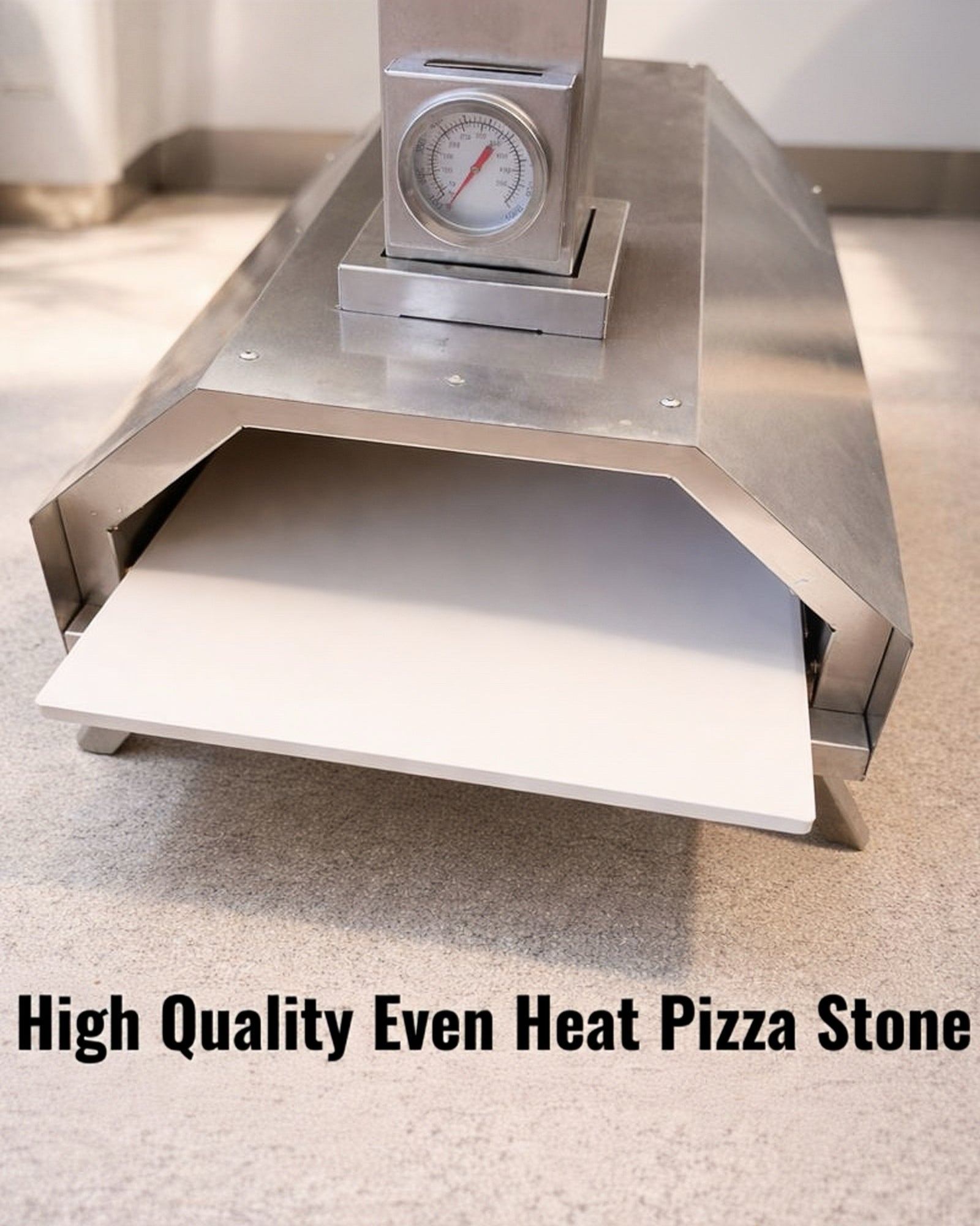 This portable pellet pizza oven is designed to achieve high temperatures quickly while maintaining consistent heat for even cooking. Featuring a rear pellet feed system and integrated chimney, it ensures steady airflow and efficient combustion. The front-mounted temperature gauge allows real-time heat monitoring, while the spacious cooking chamber accommodates large pizzas with ease. Ideal for outdoor patios, courtyards, and casual backyard gatherings.