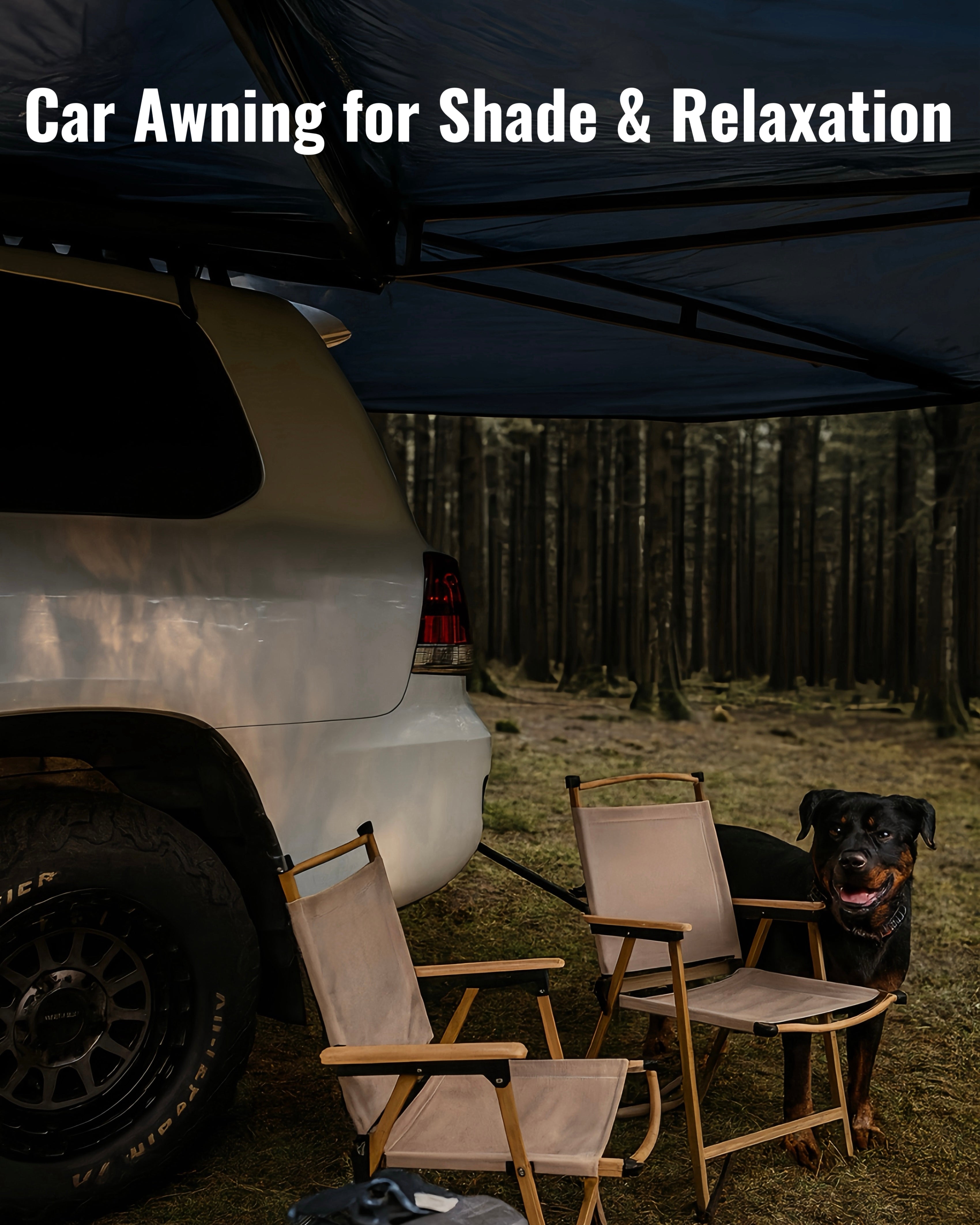 The Willkon 270° Freestanding Vehicle Awning offers extensive shade coverage for camping, road trips, and outdoor stops. Designed to attach easily to vehicles or serve as a standalone shelter, it provides versatile protection against sun and rain. The durable aluminum frame and heavy-duty canopy pack neatly into a rugged 1000D PVC storage case, making it ideal for frequent setup and teardown in all conditions.